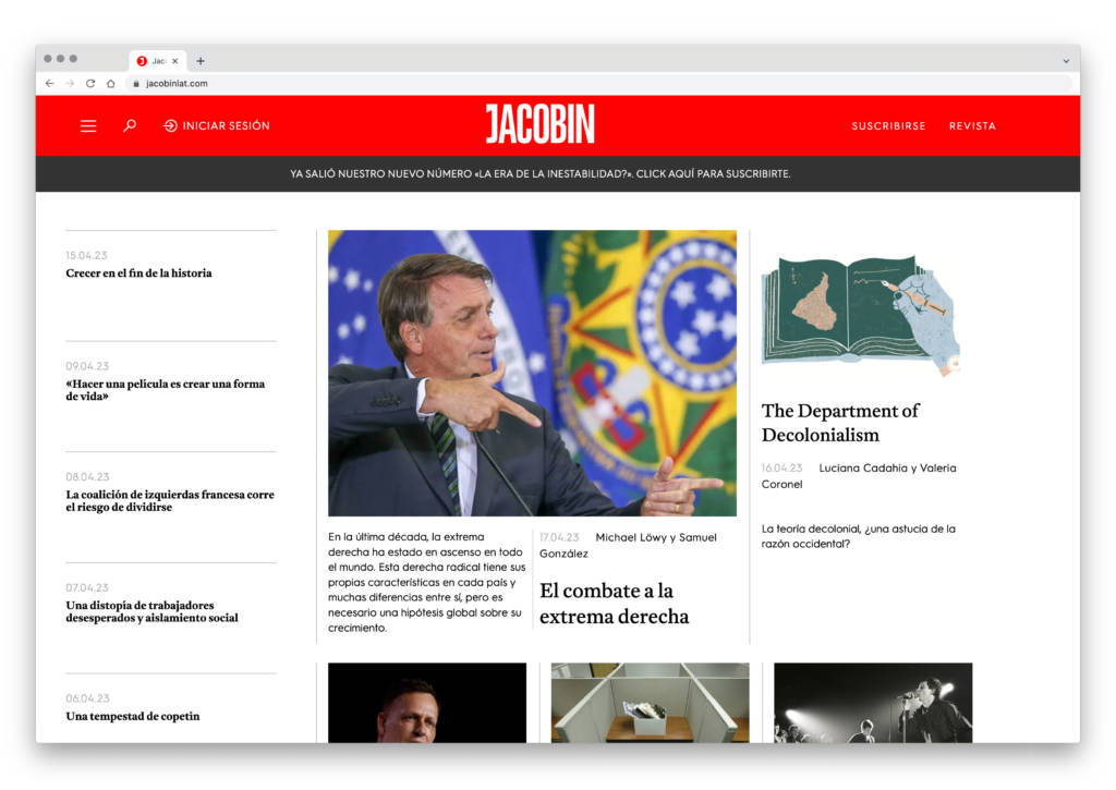 Website development for the digital magazine Jacobin Latin America. This site maintains the visual criteria of Jacobin, based in the United States.